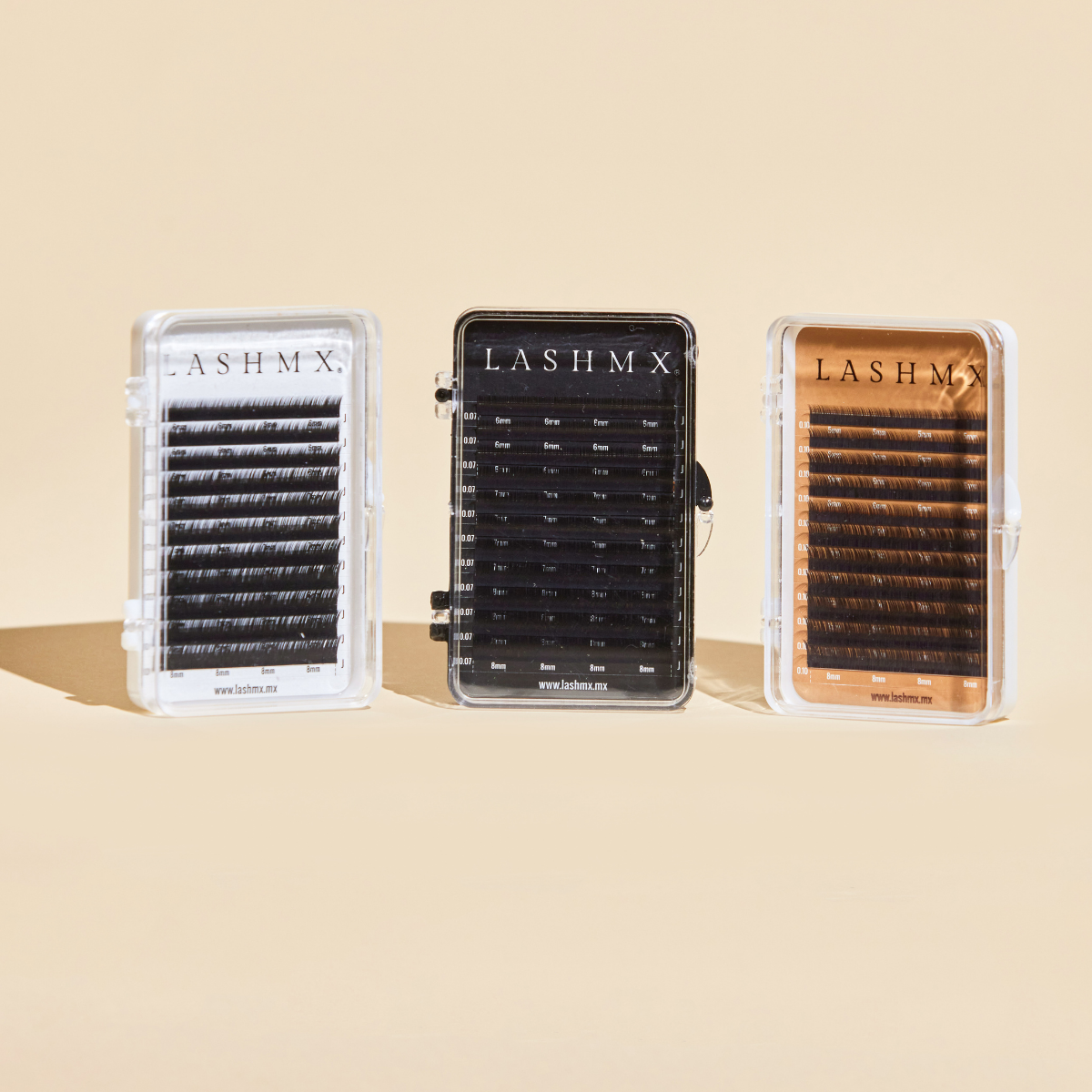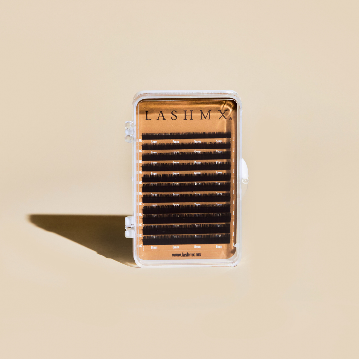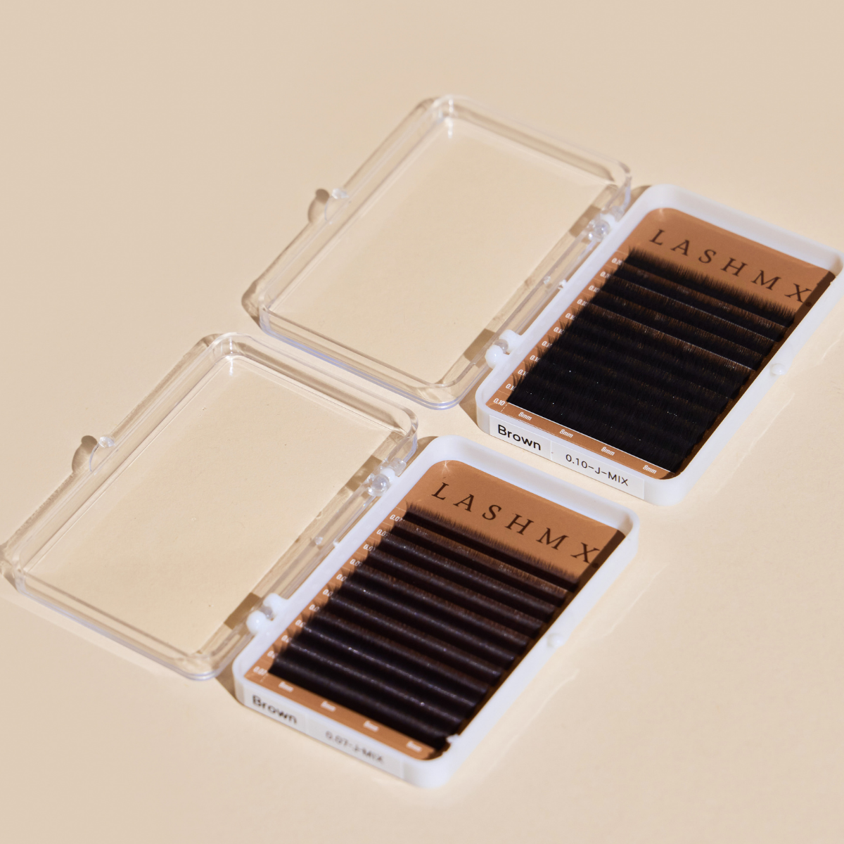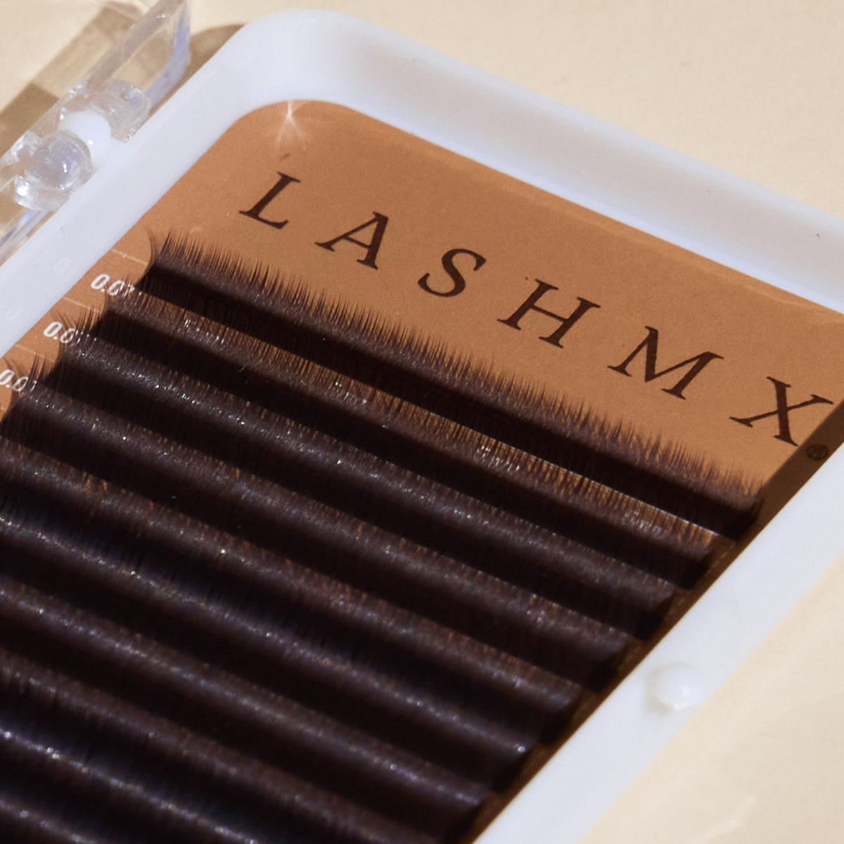 Las pestañas inferiores LASHMX en tono café están diseñadas para brindar un acabado natural, suave y elegante a cada aplicación. Su color marrón medio permite lograr un efecto más delicado y armónico, ideal para clientas que buscan un look sutil o para complementar sets en tonos cálidos.