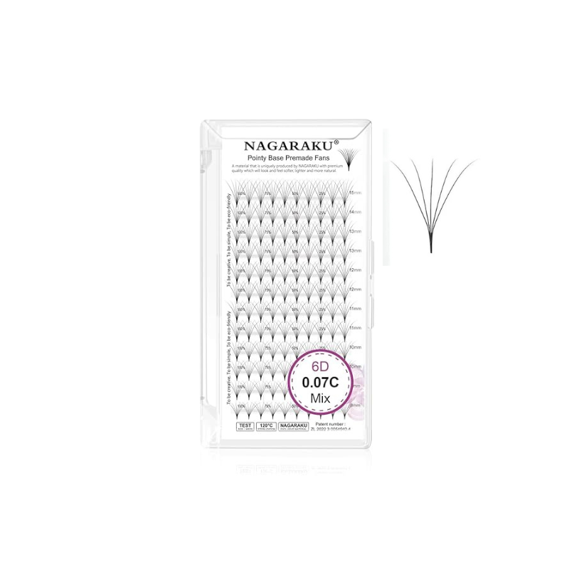 Los NAGARAKU 6D son abanicos armados listos para aplicar, diseñados para lashistas que buscan ahorrar tiempo y mantener la calidad premium en sus sets. Cada abanico está perfectamente estructurado para ofrecer un volumen intenso, uniforme y de larga duración, logrando resultados profesionales sin complicaciones.