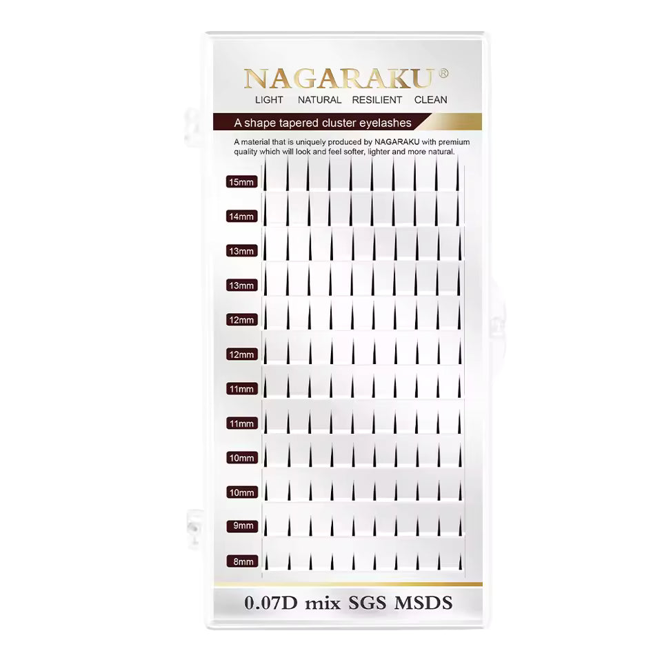 Las pestañas Nagaraku Espigas están especialmente diseñadas para facilitar la creación de estilos con estructura, como el popular efecto wispy o picos definidos. Vienen comprimidas a presión, sin adhesivo, lo que permite una separación y manipulación más precisas al momento de aplicarlas.
