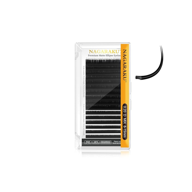 Las NAGARAKU Premium Flat Matte están diseñadas con base plana, lo que aumenta la superficie de adhesión, logrando una retención superior y mayor durabilidad en cada set. Su acabado mate ultra negro ofrece un look intenso y elegante, ideal para conseguir un efecto delineado sin necesidad de maquillaje adicional.