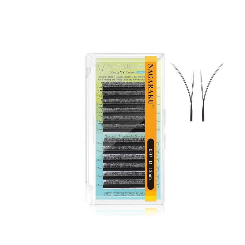 Las YY Flying de Nagaraku están diseñadas para lashistas que buscan un efecto voluminoso con textura definida y aplicación rápida. Su estructura en forma de doble “Y” genera un abanico automático al colocarse, eliminando la necesidad de formar volumen manualmente.