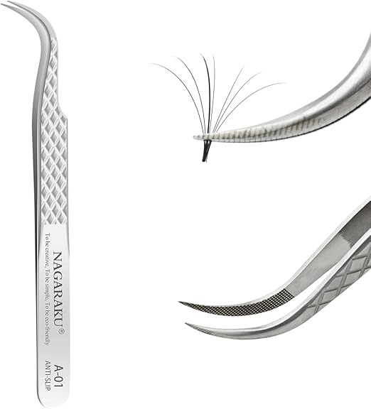 La Pinza A-01 Nagaraku está fabricada en acero inoxidable con un elegante acabado en gris metálico, ofreciendo ligereza, durabilidad y una tensión suave que facilita el trabajo en extensiones de pestañas. Su diseño con agarre tipo diamante mejora el control y la comodidad, ideal para sesiones largas sin fatiga.