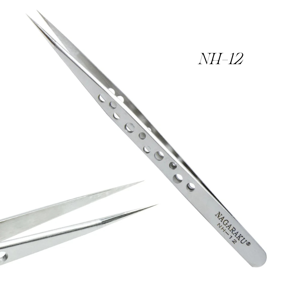 La pinza NH-12 recta de Nagaraku está diseñada para ofrecer un aislamiento preciso y eficiente de las pestañas naturales. Fabricada en acero inoxidable de alta calidad con un acabado gris metálico, esta pinza combina durabilidad, ligereza y un diseño ergonómico que facilita su uso durante sesiones prolongadas.