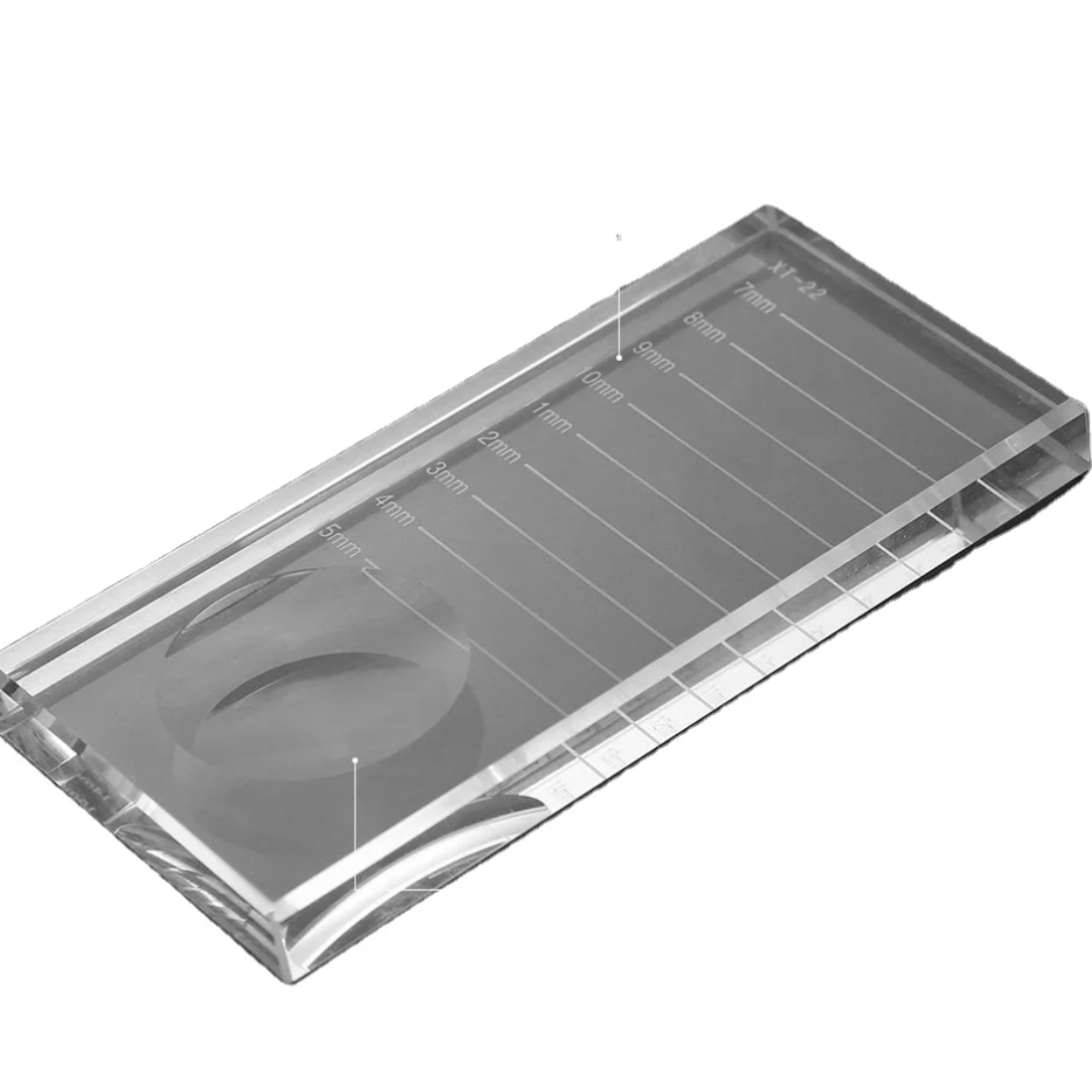 El soporte de cristal para pestañas es una herramienta práctica y duradera que permite organizar extensiones por largo, facilitando el trabajo durante la aplicación. Su superficie firme de vidrio templado ofrece estabilidad al tomar las extensiones, y sus 8 líneas marcadas van del 7 al 15 mm, cubriendo los largos más utilizados por lashistas profesionales.