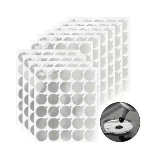 Los stickers para adhesivo son una herramienta desechable diseñada para facilitar el uso del pegamento durante la aplicación de extensiones de pestañas. Se colocan sobre una piedra jade, losa, anillo u otra superficie, creando una barrera que mantiene el adhesivo fresco por más tiempo y facilita su limpieza.