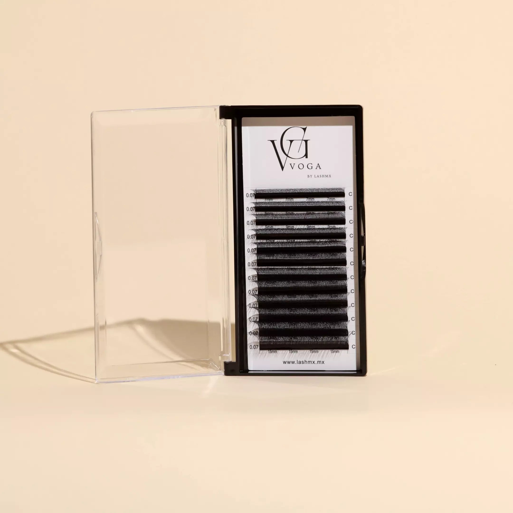 Naturalidad y calidad en cada aplicación. El Blíster VOGA by LASHMX con fibras tecnológicas EN YY está diseñado para lashistas que buscan un acabado suave, elegante y ultra natural. Su textura fina y flexible facilita la creación de sets impecables con excelente retención y curvatura estable.